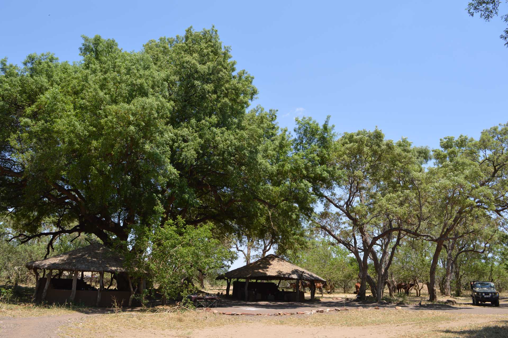 Mashatu is a huge private game reserve, which is part of the Tuli block, a ‘big game’ area, known as the ‘Land of Giants’ for its large population of elephant as well as eland, lion, ostrich, enormous Kori Bustard and massive Baobab trees. Its varied terrain ranges from belts of thick thorn scrub and tall mashatu and fever trees lining the Limpopo River, to vast dusty plains, rocky ‘kopjes’ and sandstone outcrops. It has quite a feeling of history too, with evidence of pioneering explorers such as Cecil Rhodes of the Anglo Boer war, and traces of ancient settlements dating back 1500 years. Nights on safari are in 3 camp locations, all different in style – a traditional tented safari camp, a ‘tree house’ style camp raised on stilts amongst the trees and an ancient ‘kgotla’ enclosure where, protected from game, you sleep in cozy camping pods.