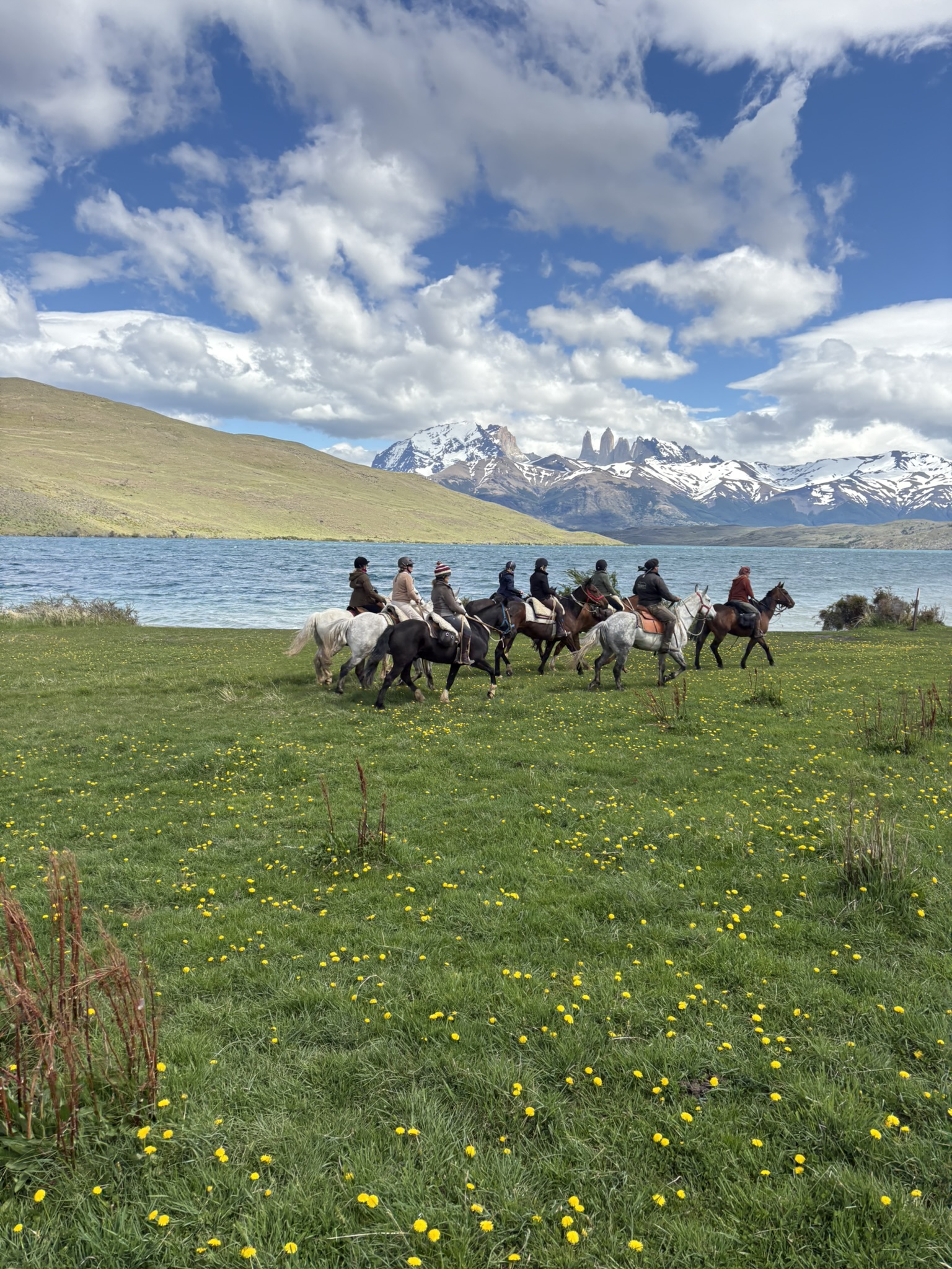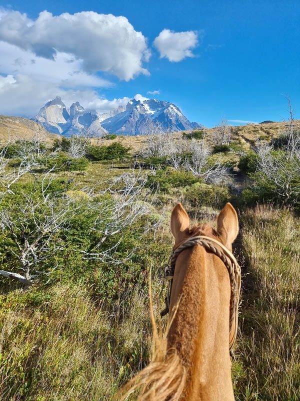Its one of those bucket list ‘one day I will go to..’ destinations and ideal for horses. The grassy plains make a superb setting for long canters and the backdrop is extraordinary. The riding style is South American so its ‘get on and go’ but go you can, covering many miles a day, so you need to be riding fit. You also need to be resilient (or at least a careful packer) to cope with  constantly changing and sometimes very challenging weather. Nights are in estancias, comfortable ‘glamping’ domes and guest lodges. They are warm and dry, chosen for location and to make the most of the spectacular setting; whilst they vary and are not ’boutique’ they offer a reasonably comfortable hikers’ rest at the end of the day.